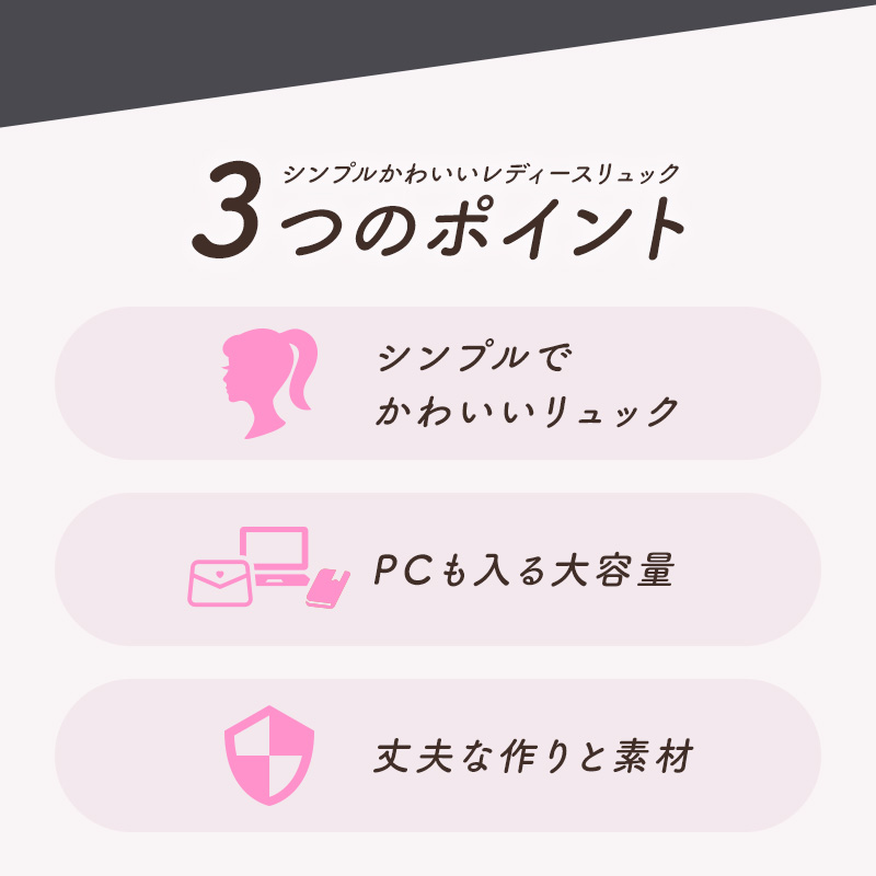 シンプルでナチュラルな可愛さが魅力のレディースリュックです。
