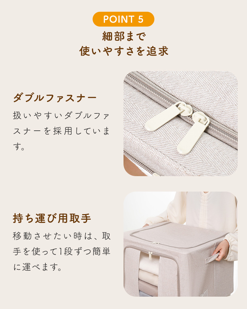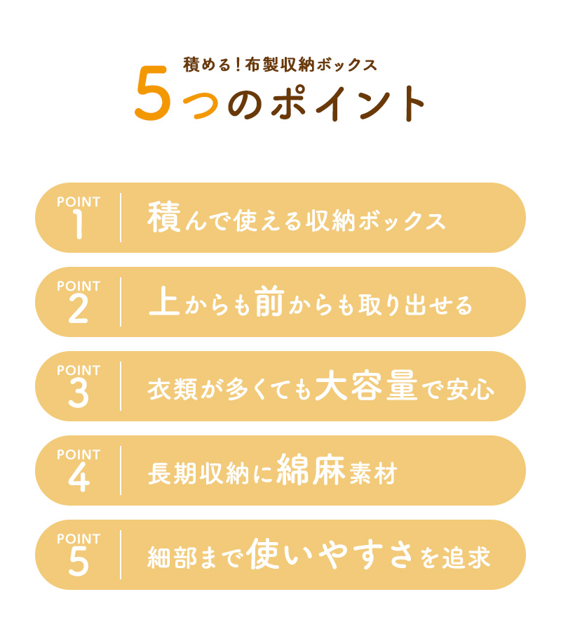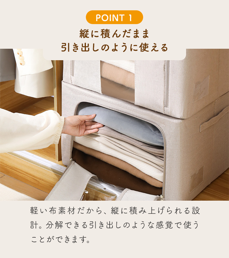 衣類やタオル、寝具、季節ものの整理整頓に最適。
